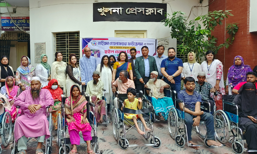 খুলনা প্রেসক্লাব চত্বরে শারীরিক প্রতিবন্ধীদের মাঝে হুইল চেয়ার বিতরণ করা হয়েছে। মঙ্গলবার দুপুরে খুলনা প্রেসক্লাব চত্বরে নাহিয়ান ওয়েলফেয়ার ফাউন্ডেশন এর উদ্যোগে দুস্থ ও অসহায় মানুষদের মাঝে সহায়তা কার্যক্রমের অংশ হিসেবে এসব হুইল চেয়ার বিতরণ করা হয়।